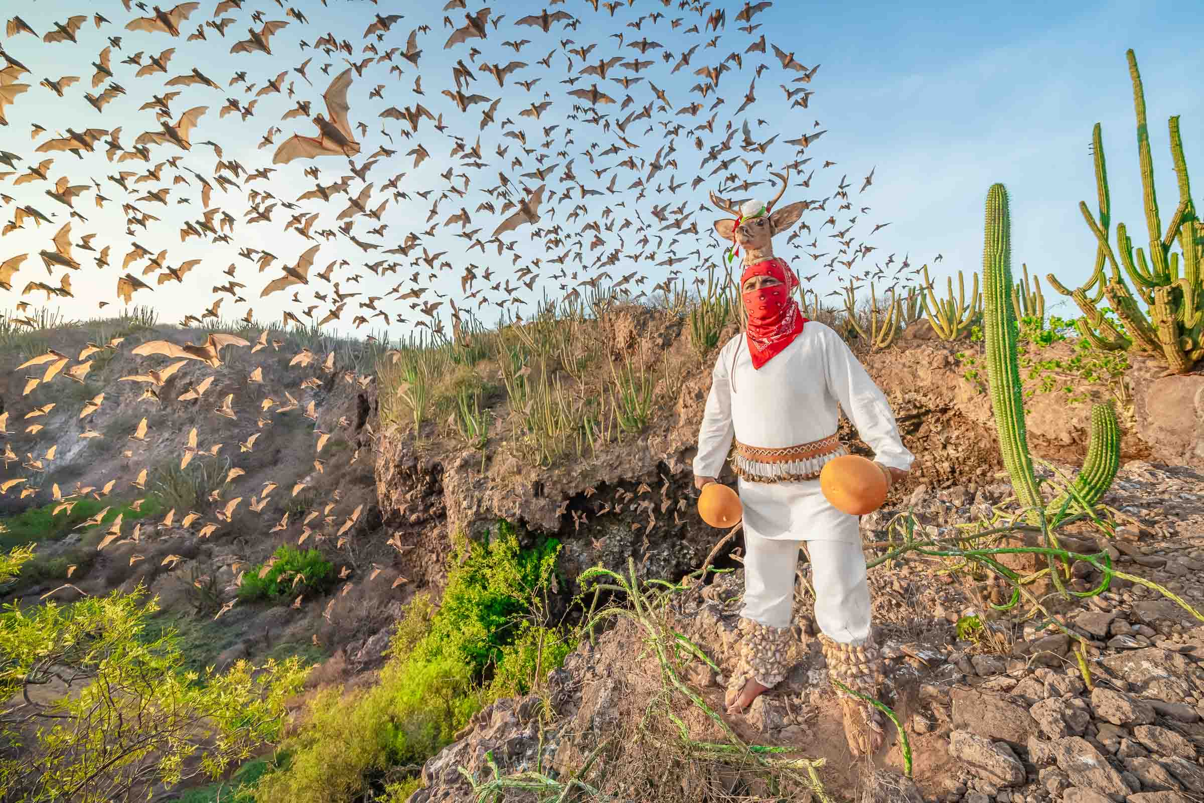 Es importante aclarar que esta serie no busca representar la danza ritual, una expresión sagrada, sino honrar la riqueza biocultural de la región. Cada fotografía es una ventana a este mundo donde el Venado se integra con el paisaje para preservar la armonía entre lo humano y lo divino.